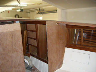 Messy, messy.... big sheets, fumed silica thickened epoxy, and lots of scarphs have to all fit correctly and not slop onto the finish work inside.